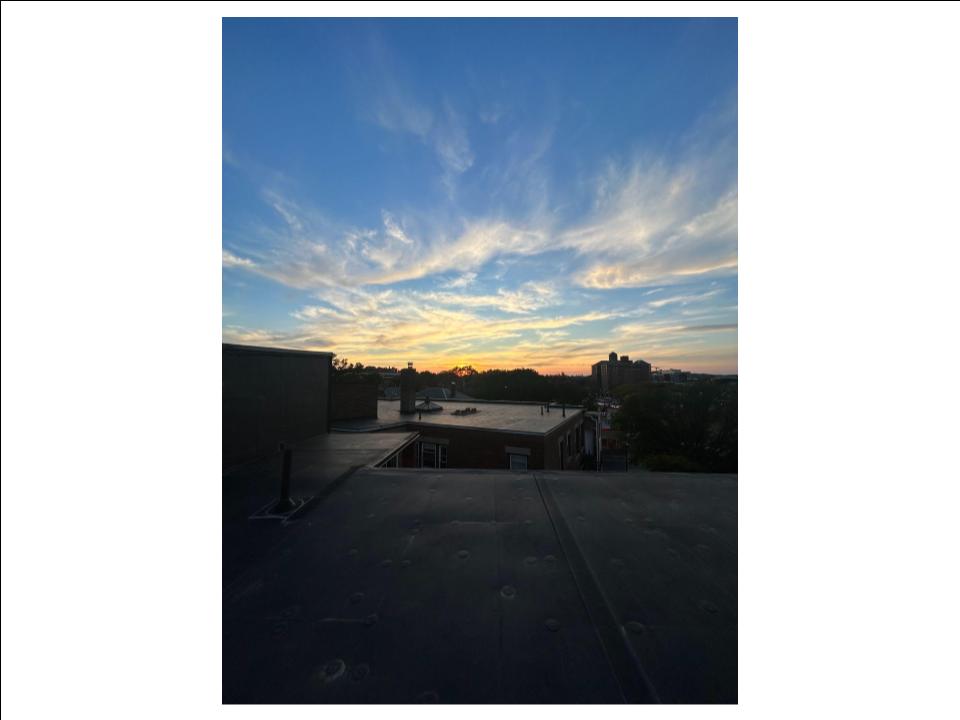 On September 8, 2025, I observed the sunset from the balcony of my apartment on the 8th floor in Brookline. Being higher up gave me a broader vantage point than street level, but I still found that the city skyline partially blocked my line of sight to the western horizon. The official forecast listed sunset at 7:05 PM, yet from my perspective the sun appeared to dip below the buildings several minutes earlier. This reinforced for me how local geography and elevation can shift the actual viewing experience of sunset times. For future observations, I plan to compare my balcony view with a more open location like the Charles River or an elevated rooftop where the horizon is less obstructed, allowing me to track the sun’s movement more precisely against the official times.
