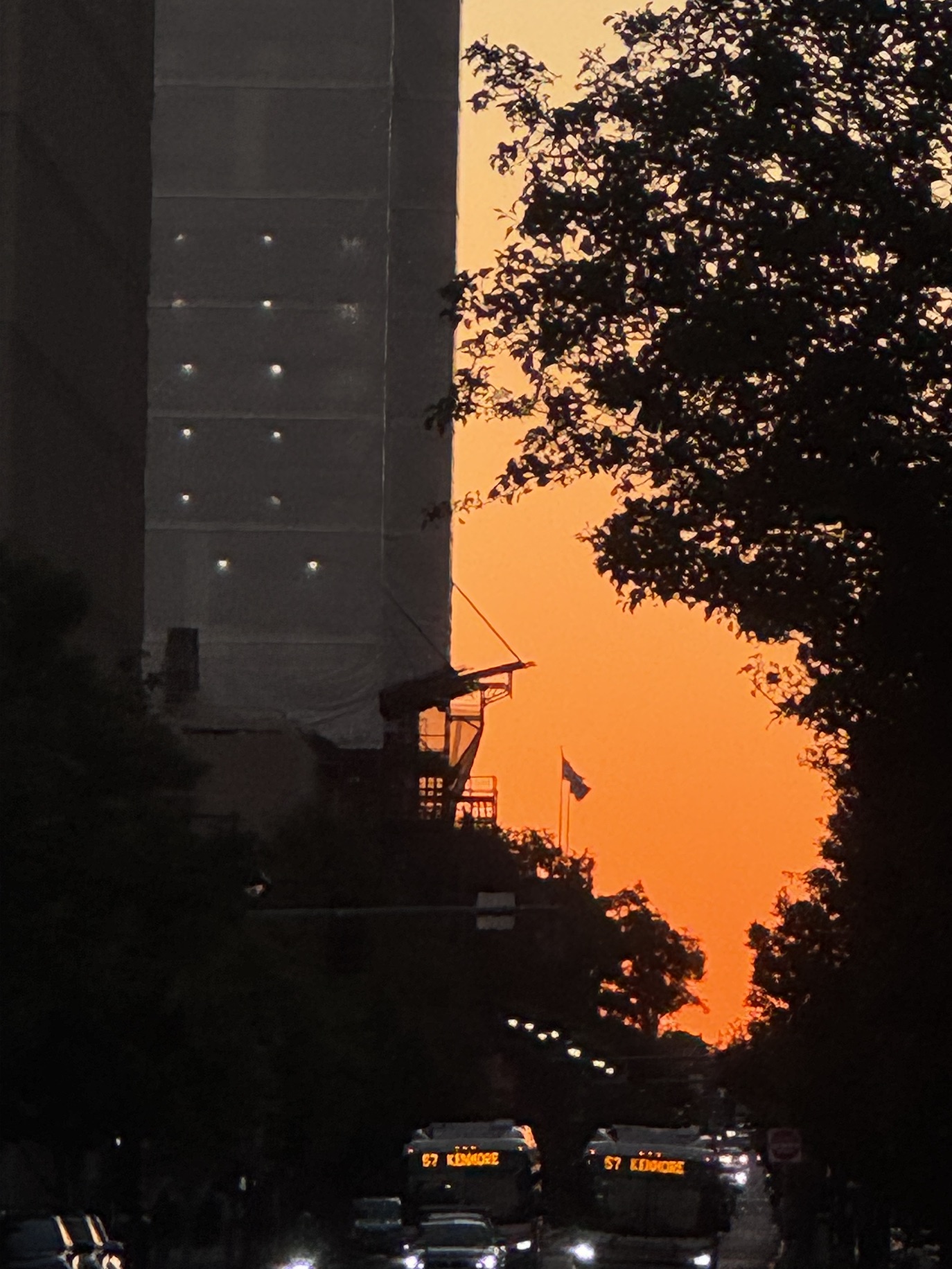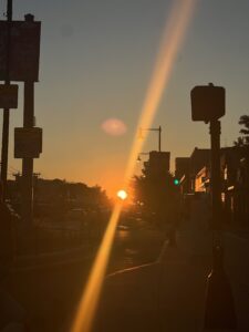 I took this photo around 3 minutes before the sunset time on the iPhone weather app. This photo was taken at my friend’s dorm on the ninth floor of West Towers in the towers dorm. Even though I was able to get a decent view of the sun almost setting, some of it was blocked by some buildings. I think for the Autumnal Equinox, I may try a higher floor in a nearby area, I was thinking maybe the upper floors of CDS, which will hopefully provide an unobstructed view