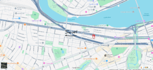 I took this picture on a bridge accessed from Bay State. This location provides a clear western view, which is essential for tracking the sun’s movement. The elevated pedestrian bridge gives an unobstructed sightline over the traffic and rooftops, allowing the sun’s position relative to the horizon and nearby landmarks to be observed and recorded accurately. Although nearby buildings partially frame the horizon, the wide angle and open sky make it a strong candidate for conducting the full experiment.